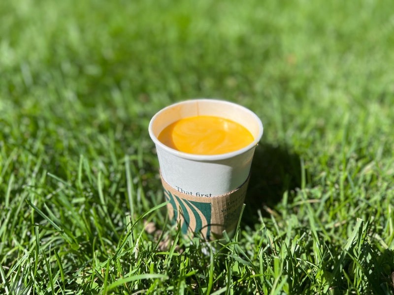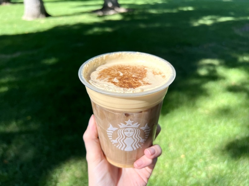 Another Starbucks fall drink with oat milk, the Apple Crisp Oatmilk Macchiato, steams the milk first and adds blonde espresso, apple brown sugar syrup, and spiced apple drizzle. An apple a day might keep the doctor away, but this yummy fall drink will keep the blues away and make your day much better! Don’t forget, if oat milk isn’t your thing, you can switch it to any type Starbucks offers. What’s blonde espresso, you ask? Starbucks says it’s a lighter roast with a smooth and creamy texture that comes from coffee beans imported from East Africa and Latin America.