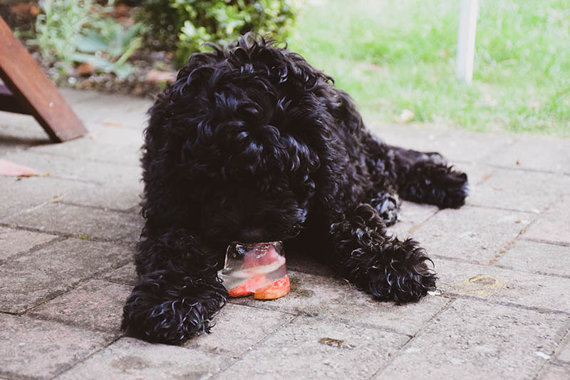 These frozen blueberries are a particular favorite among dogs, probably because of their abundance of antioxidants. Other great options for frozen fruit treats include blueberries, strawberries, apples, and peaches (but not grapes because they’re toxic to dogs). For this recipe, you’ll need 1/2 cup of fruit and 3 tablespoons of peanut butter. Simply mix the peanut butter with the fruit and toss it in an ice tray (or another tray) and in the freezer for about 2 hours.